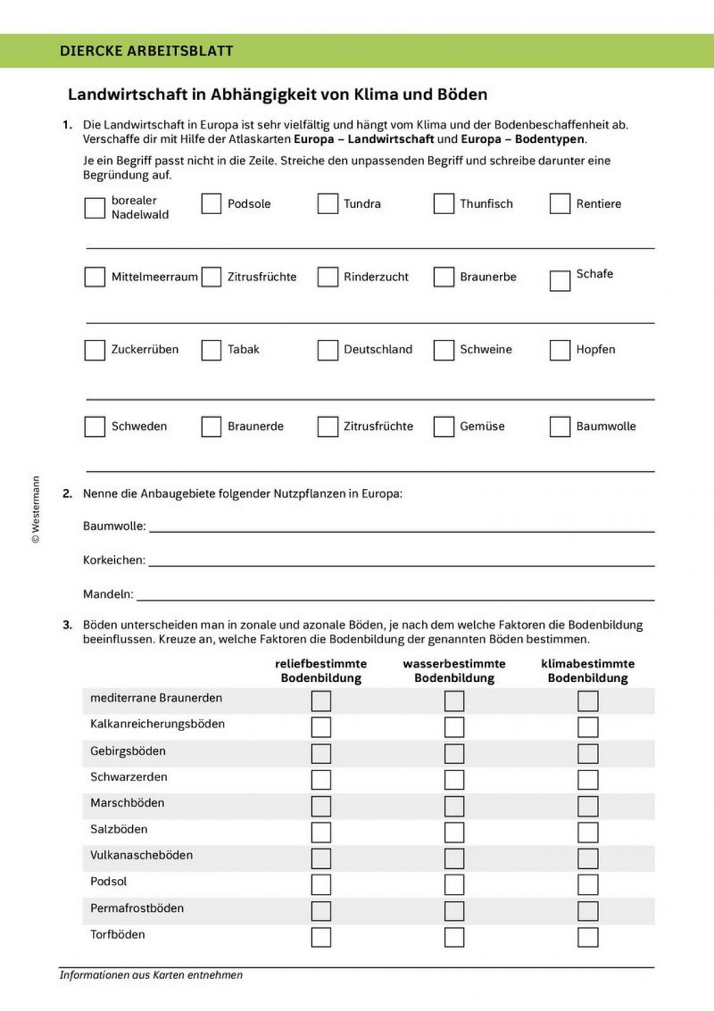 Bei der landwirtschaftlichen Nutzung Europas lassen sich fünf räumliche Haupttypen unterscheiden (siehe auch Klimadiagramme und Fotos). Charakteristisch für sie sind bestimmte Leitpflanzen mit ihren jeweiligen ökologischen Ansprüchen.