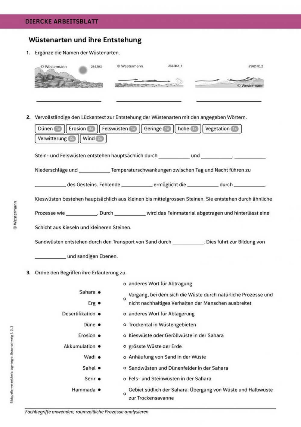 Zum editierbaren Arbeitsblatt: "Wüstenarten und ihre Entstehung"